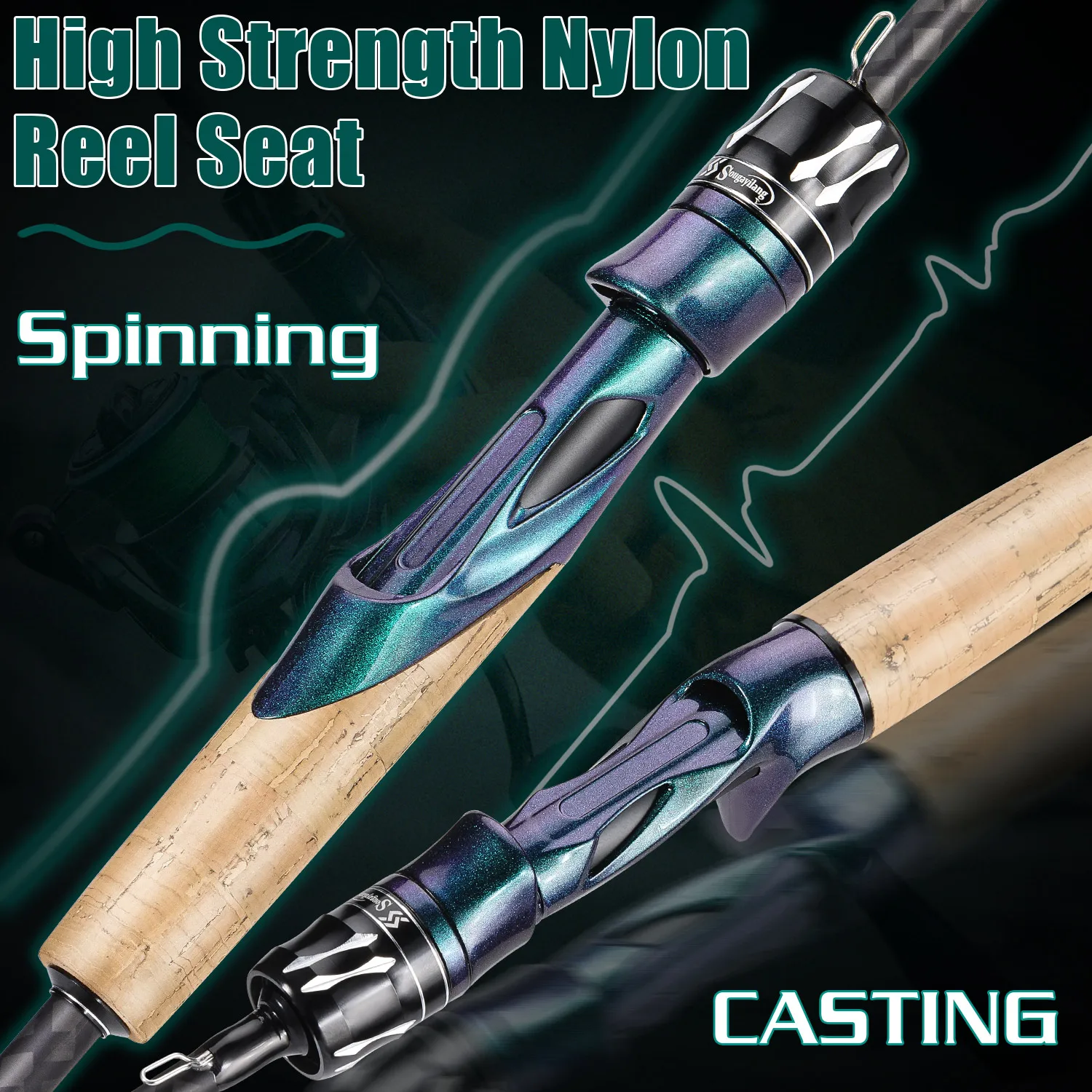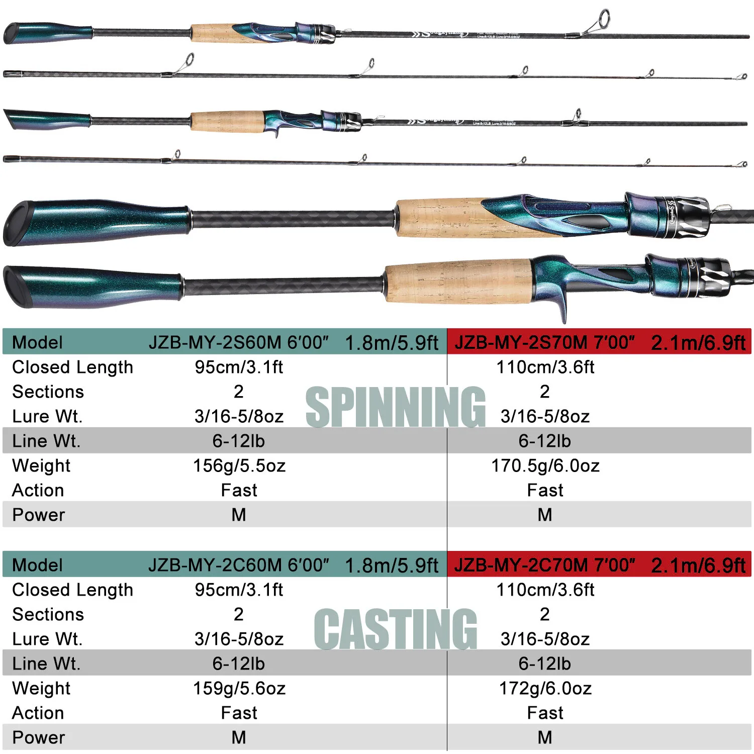 2 - Rod body material: Made of high carbon material, giving the fishing rod an ultra light weight and excellent strength, ensuring that it is both lightweight and durable during use.