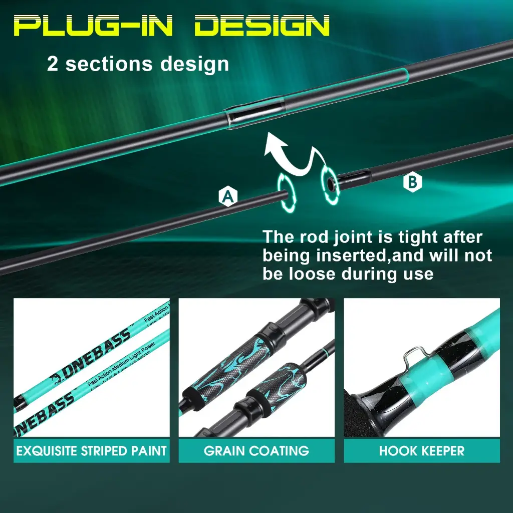 7 - Connection design: Two section plug-in design, the rod section is tightly connected after insertion, and will not loosen during use. Some parts also have exquisite stripe coating, texture coating, and fishing hook fixing device.