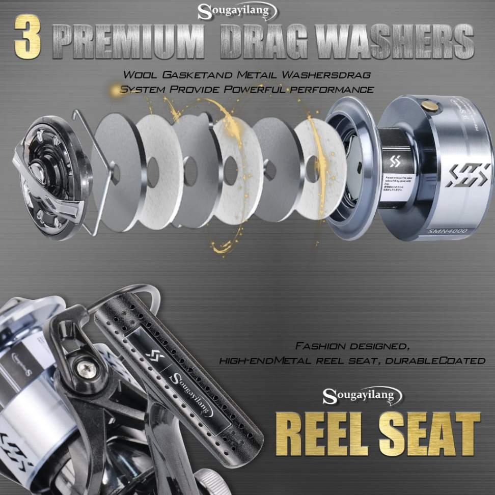 3. Sealed drag washers, always lubricated, always smooth.Slow oscillation gearing : improves line lay and minimizes line twist
