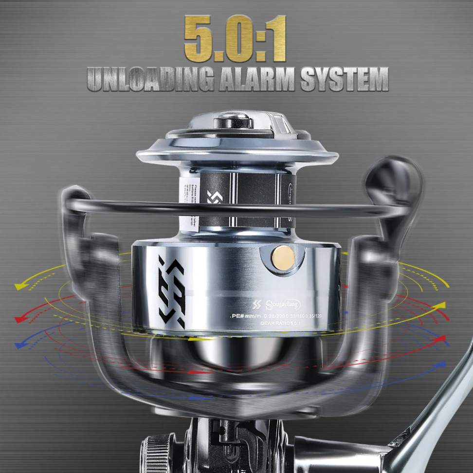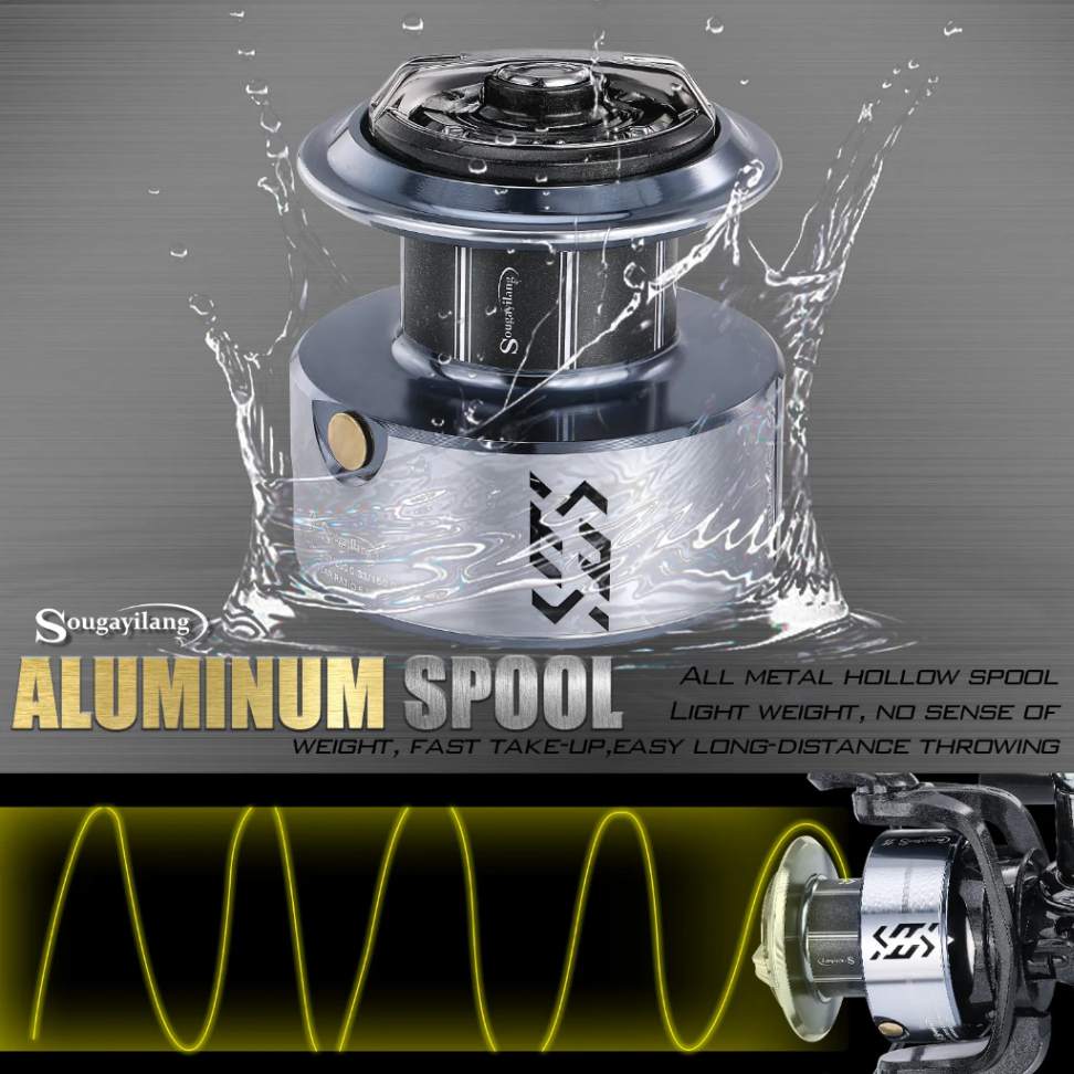 5. Metal spool,bold guide line ring, EVA grip,have high quality Silvery body.